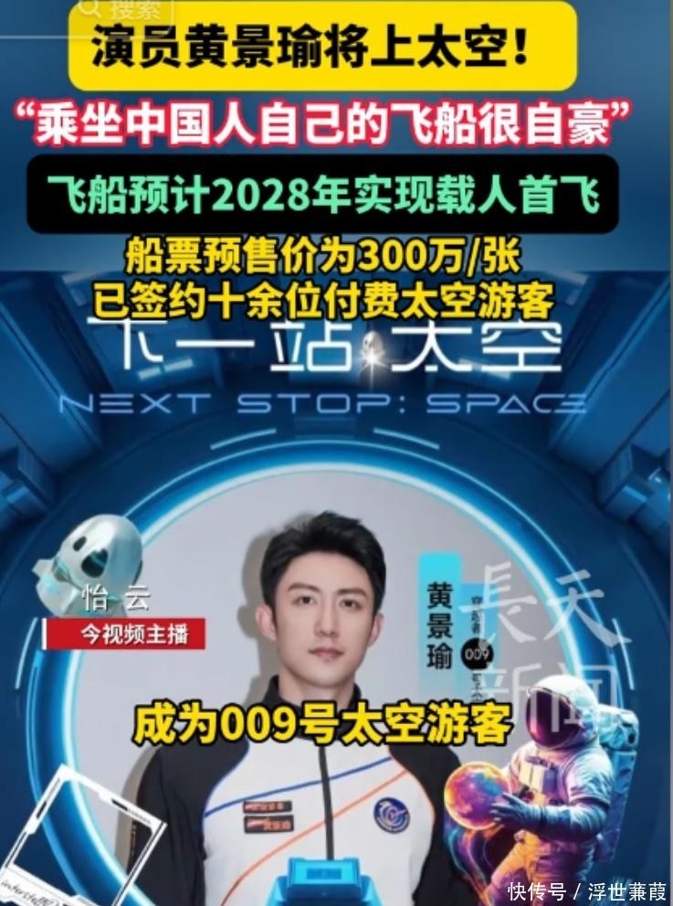 日前,国内商业航天企业“穿越者”正式宣布,黄景瑜成为“穿越者壹号”亚轨道飞行任务第009号乘客,预计将于2028年搭乘我国自主研制的载人飞船升空,完成为期3至6分钟的真实失重体验。